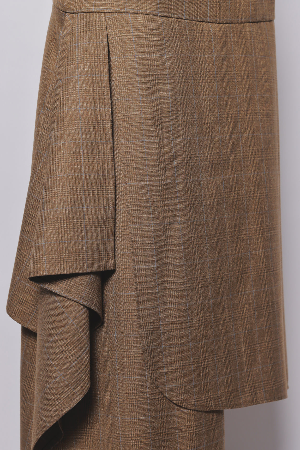 This Asymmetrical Plaid Suiting Skirt brings a modern edge to classic tailoring. Crafted from premium suiting fabric, it features a fluid A-line silhouette with layered asymmetrical panels that move effortlessly with every step. A subtle blue line woven into the plaid adds depth and contrast, giving the piece a quiet statement feel that elevates everyday dressing.