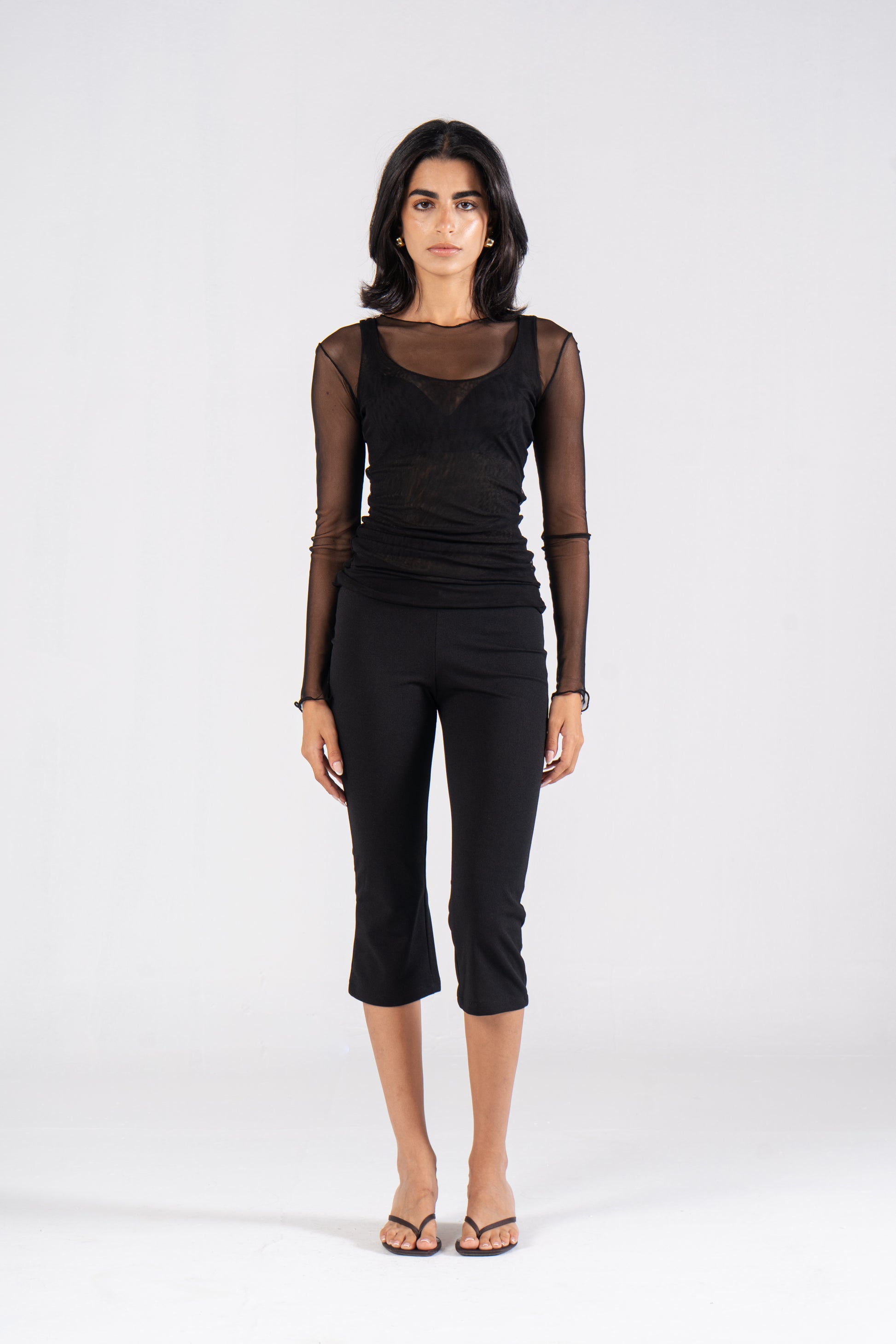 The Sheer Mesh Duo offers two versatile tops in one elevated design. Featuring a long-sleeve sheer mesh layer and a matching sleeveless underlayer, each piece can be worn together for a layered, dimensional look or styled separately for endless outfit possibilities. The fitted silhouette and lightweight fabric create a sleek, second-skin effect that transitions effortlessly from day to night.