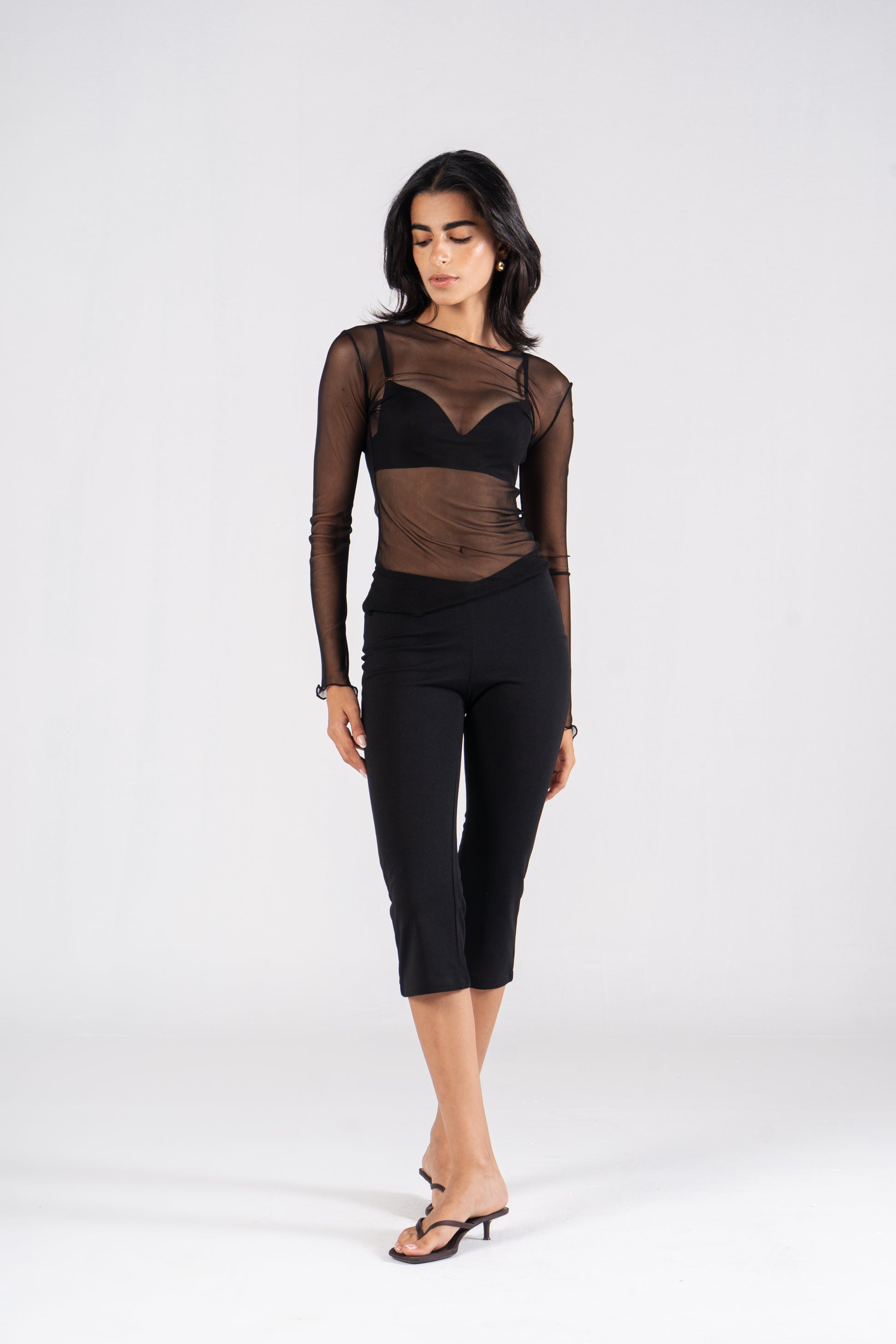 These V-Cut Black Cropped Pants are the epitome of modern sophistication. Featuring a flattering V-shaped waistline, these pants offer a sleek and sculpted fit that enhances your silhouette. The cropped design adds a contemporary edge, making them perfect for any occasion. Crafted from a high-quality blend of viscose, polyamide, and elastane, these pants provide comfort and flexibility without compromising on style. Whether paired with a casual top or a formal blouse, these pants will elevate your look with a touch of bold elegance.